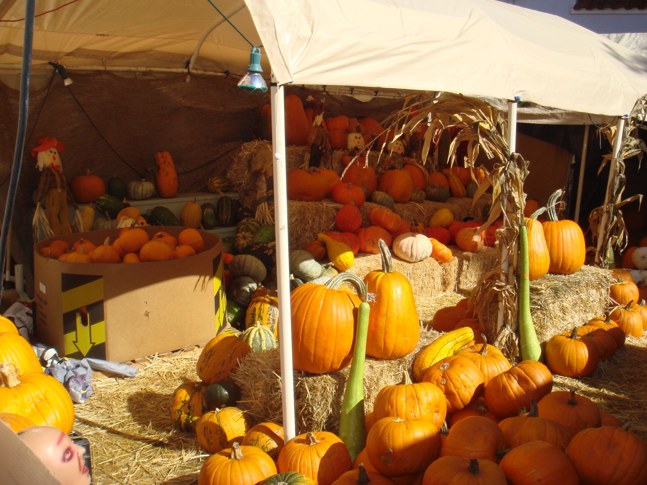 We have been on Piedmont Avenue since 1996. Walk through our Halloween store at 4414 Piedmont into a Pumpkin Wonderland. We carry over 15 varieties of pumpkins; from tiny Muskins up to Atlantic Giants, Orange, Red, White, Bumpy, Ribbed, Green & Multi-Colored. We also carry corn stalks, corn, gourds, straw and straw bales. After you pick out a pumpkin, come in to the store and purchase a carving kit and candles to make your Jack-o-Lantern unique. Also, decorate your house and yard with spider webs, giant spiders, tombstones, skeletons & scarecrows